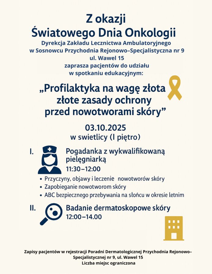 SPOTKANIE EDUKACYJNE „Profilaktyka na wagę złota – złote zasady ochrony przed nowotworami skóry”